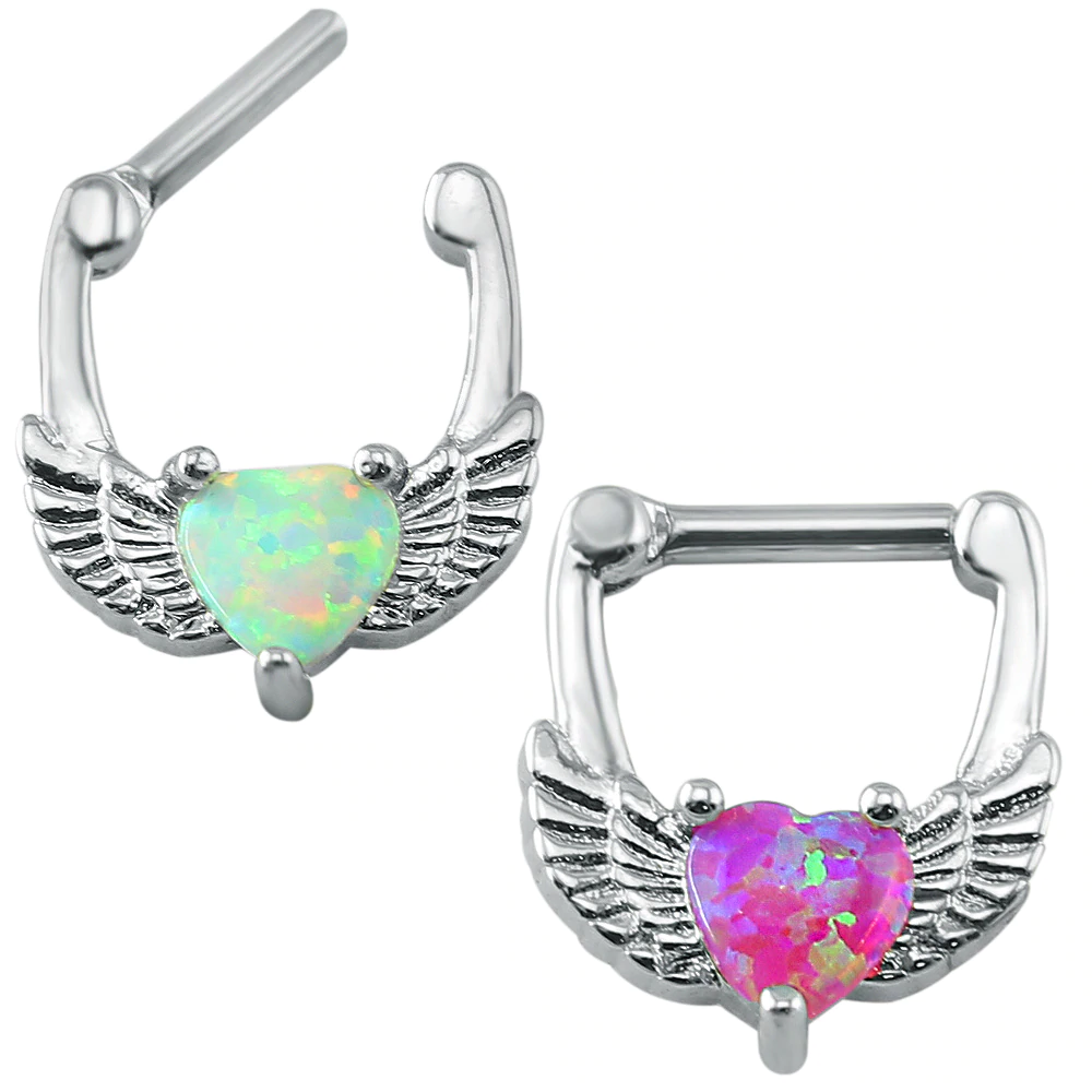 Exquisite crystal wing septum piercing (1pc) with small dots (pierced for nose). Used as a septum piercing, although it can be worn as a tragus earring or as a hoop earring.