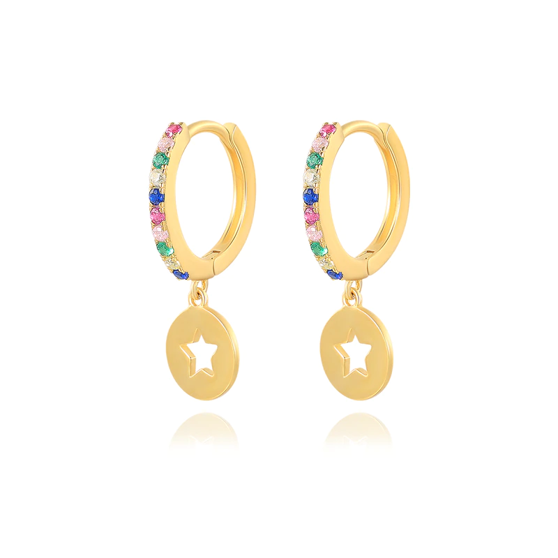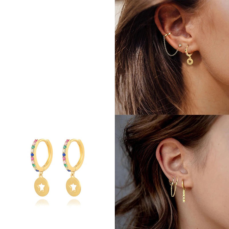 These beautiful rainbow star earrings (2 pieces) are encrusted with multicolored cubic zirconia stones. It's simple yet distinctive, and its modern and minimalist design makes it ideal for both everyday and special occasions.