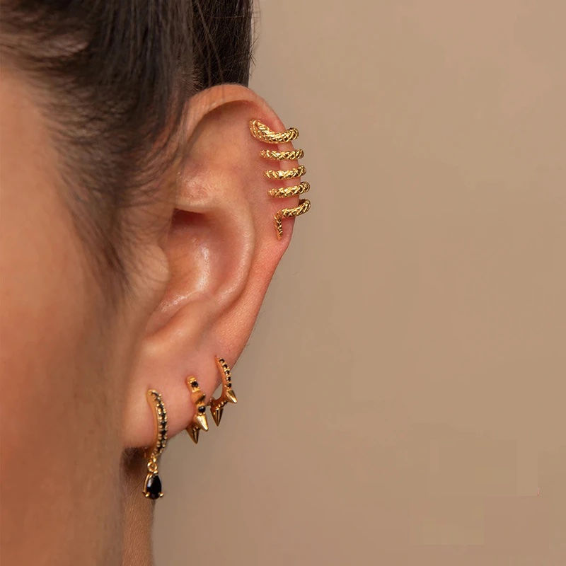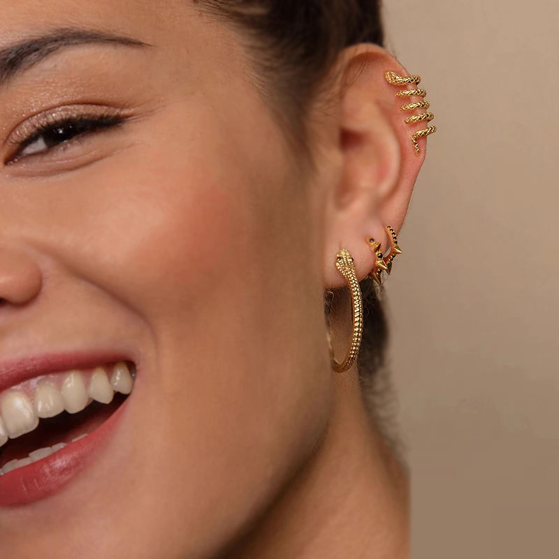 გველის ფორმის ვერცხლის რეგულირებადი fake საყურე (1 ცალი). მსუბუქი და მინიმალისტური დიზაინის საყურე მოუხდება ნებისმიერ ლუქს.